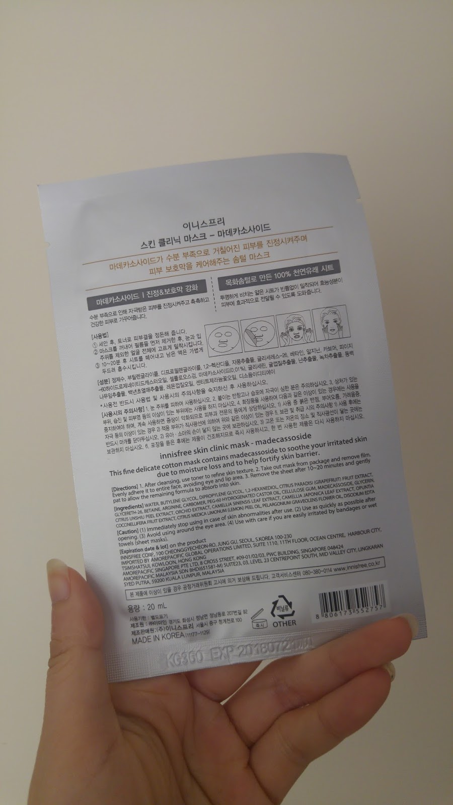 All information translated into English. As this is part of Innisfree's skin clinic mask, the packaging follows a distinct 'science-y' feel.